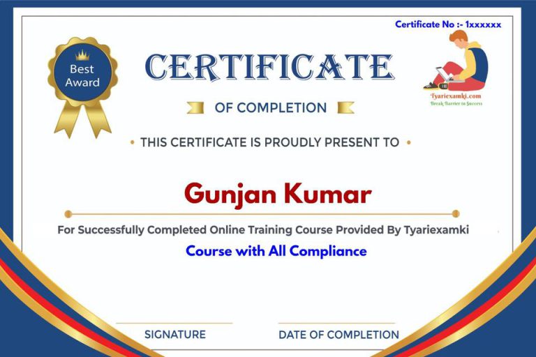 This certificate validates the successful completion of the online training course by Tyariexamki. It represents dedication, knowledge, and expertise in GST compliance and taxation.